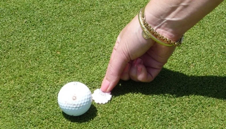 - 2단계 – 마커를 제자리에 배치: 마커를 공 바로 뒤(또는 필요한 경우 옆에) 배치하여 공을 들어올릴 때 마커가 공의 원래 위치를 유지하도록 한다.