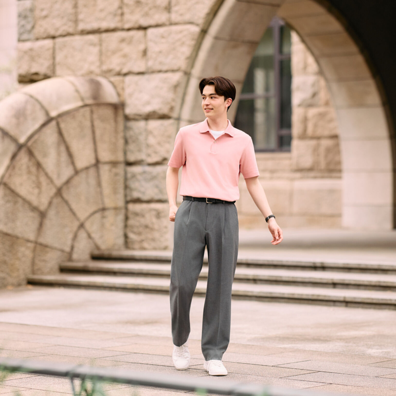 젊고 품격 있는 룩을 원한다면 폴로 셔츠와 팬츠 조합이 딱이에요. 무지나 살짝 패턴 있는 폴로 셔츠를 베이지, 그레이, 라이트 블루 팬츠와 함께 입으면 역동적이면서도 세련돼요. 편안하면서도 회사에서 잘 어울리는 스타일이에요.