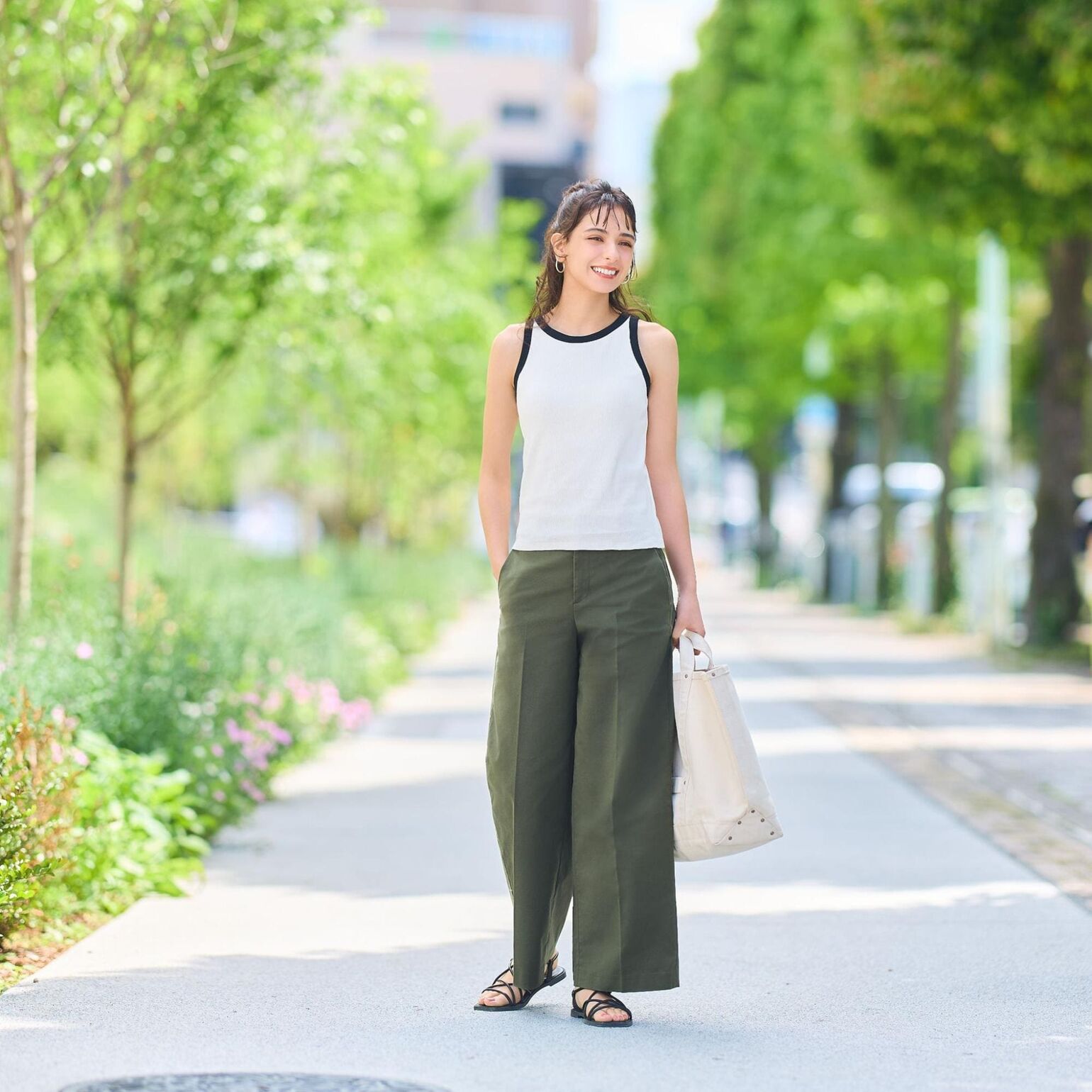 브라탑과 와이드 팬츠 매치