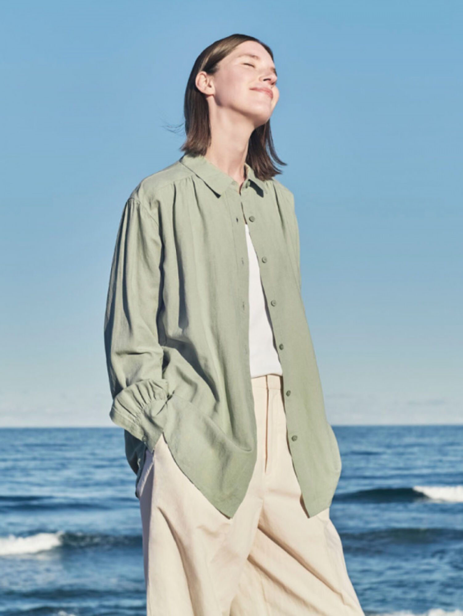 크림색은 중성 톤이라 조화롭고 편안한 느낌을 줘요. 흰색처럼 깨끗하고 맑으면서도 우아하고 평화로운 분위기를 더하죠. 그래서 일상복으로 많은 여성분들이 좋아해요. 세련되고 고급스러운 매력을 살려주는 색이에요.